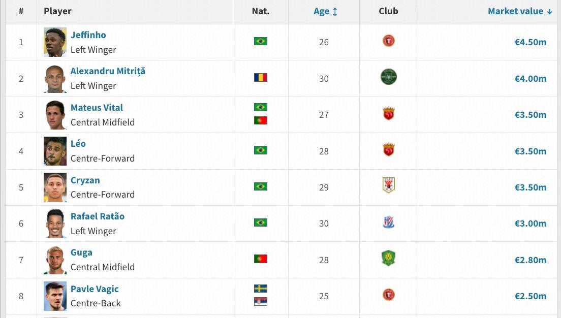 而与马克塔-盖伊并列第8的仍为辽宁铁人的外援,瑞典中卫瓦吉奇,德转身价250万欧。